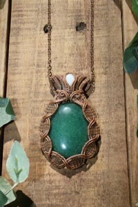 This is one of my favorite pieces I've made. This was my first time making an intricately woven design like this one, and it reminds me of a DNA strand! The wrap features a green aventurine, with an opal up top.